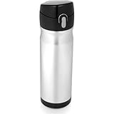 Take your favorite beverage on the go with you with this stylish easy-to-grab 16-ounce, stainless steel backpack bottle in silver from Thermos. Its TherMax double wall vacuum insulation locks in temperature to preserve flavor and freshness, and the container stays cool to the touch with hot beverages and is condensation-free with cold. It's made from unbreakable, dent-resistant 18/8 stainless steel with a clear coating that reduces fingerprints. The contoured body is comfortable to hold and fits most automobile drink holders, and its drink lid opens with push-button ease and locks closed for leak-proof travel. It measures 2.9 by 2.9 by 9.3 inches (WxDxH). Hand wash only.