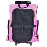 Pink, Airline approved, 11" long x 17" wide x 21" high pet carrier backpack with a 35 lb capacity is a great way of letting your pets travel without the need of a leash and various other methods of keeping your pet safe at airports and on the plane. Includes 2 zippered pockets, atelescoping luggage style handle and built-in wheels.